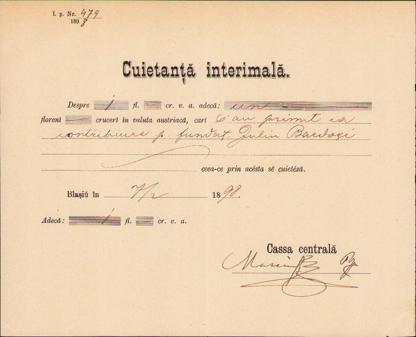 Chitanță, Blaj, 1898, Fundația Iuliu Bardoși