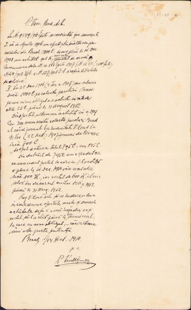 A1924 Act privitor la o contribuție financiară pentru ridicarea gimnaziului românesc din Brad, județul Hunedoara, 1910