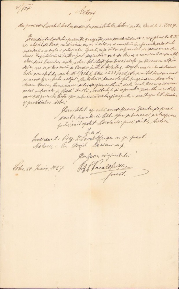 Extras ședință ASTRA Brad, județul Hunedoara, 1927