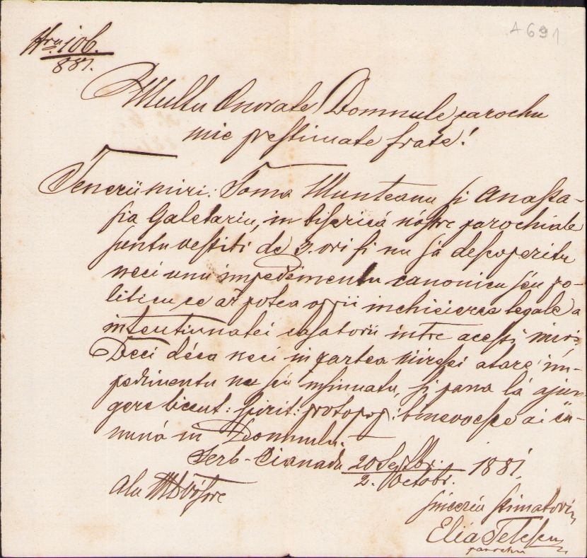A2049 Licență de căsătorie, 1881, Cenad, județul Timiș
