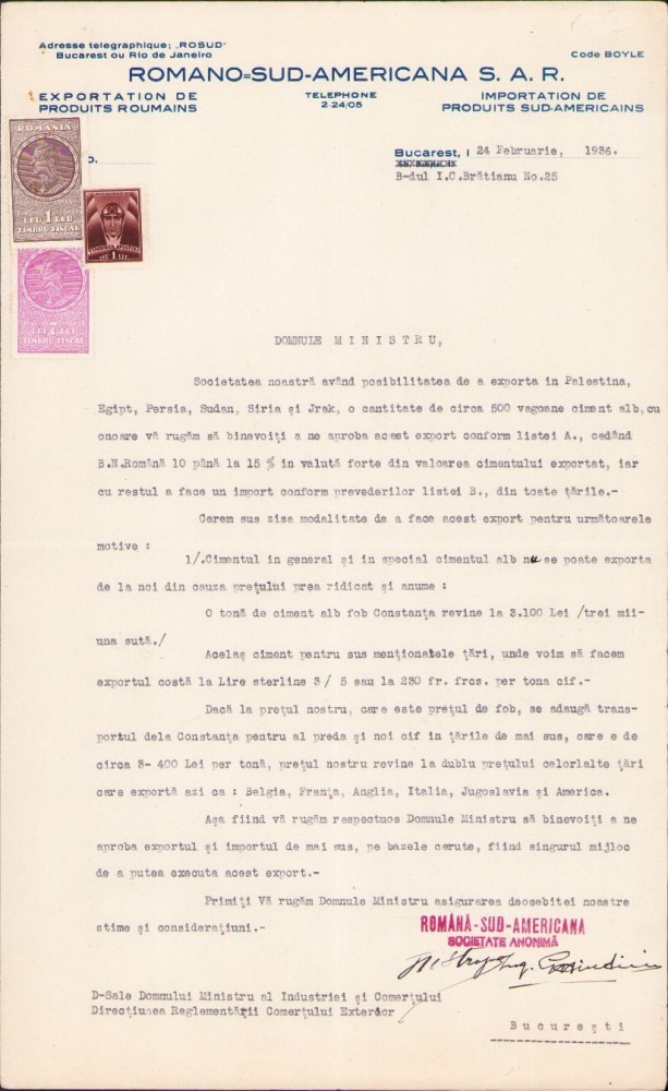 Act cu antet Româno-Sud-Americana S.A.R., 1936