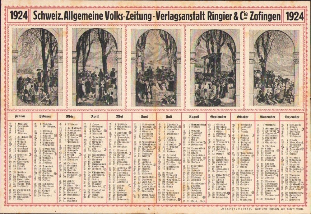 A2146 Calendar, 1924, Schweiz Allgemeine Volks-Zeitung-Verlagsanstalt Ringier & Cie Zofingen