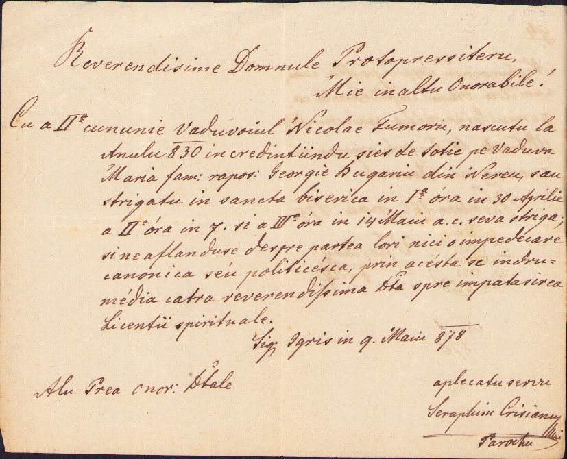 Licență de căsătorie, 1878, Igriș, județul Timiș.