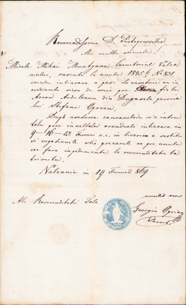 Cu ștampila model 1865 a bisericii din Vălcani, respectiv model 1866 a parohiei din Comloșu Mare.