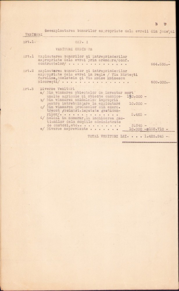 A2689N Buget pentru exploatarea bunurilor și întreprinderilor expropriate de la evrei, județul Tecuci, 1941