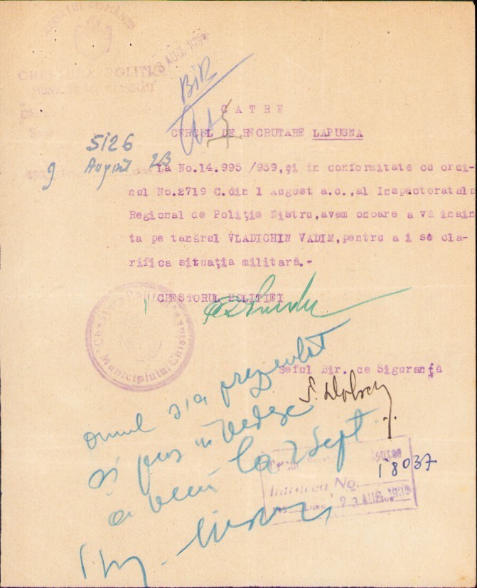 A2717N Act Chestura Poliției Municipiului Chișinău, 1939