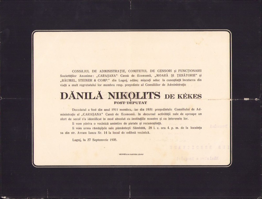 Ferpar deputat Dănilă Nikolits de Kékes, 1935, Lugoj.