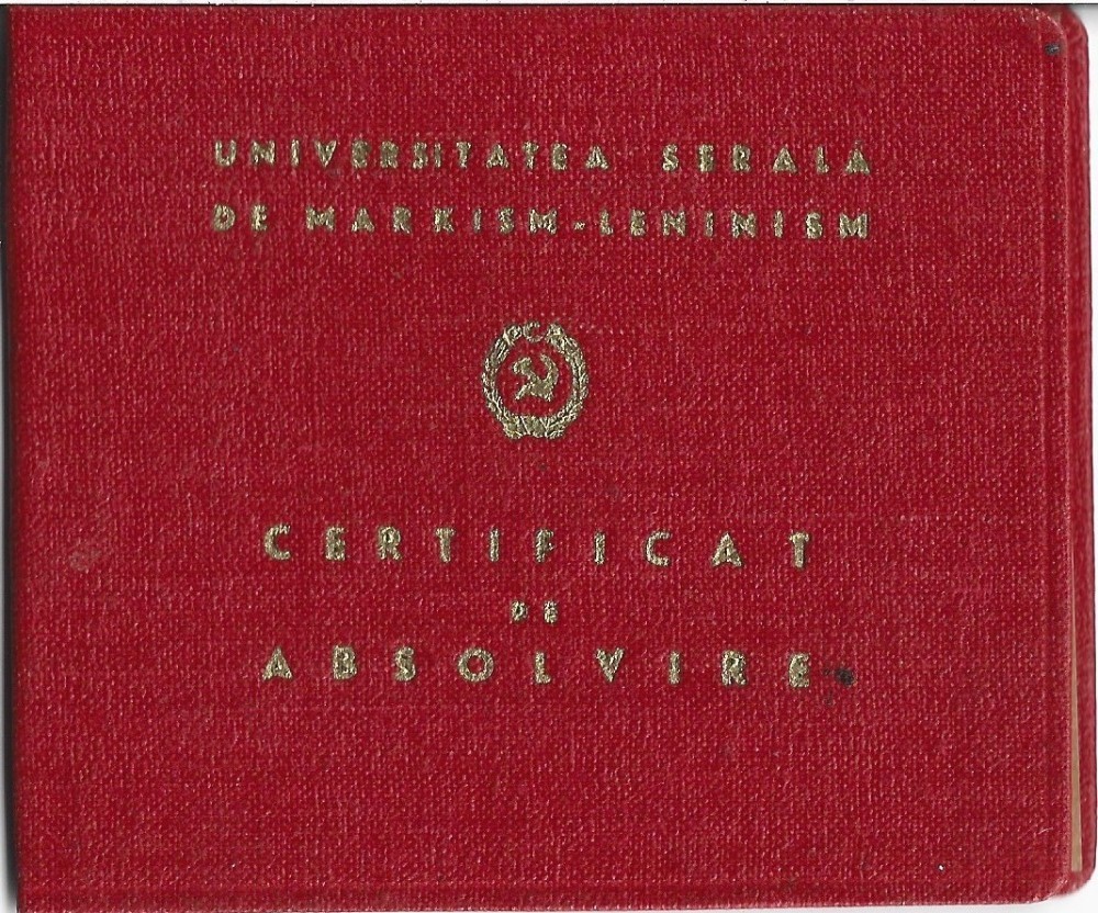 Certificat de absolvire Universitatea serală de marxism-leninism, 1966, București