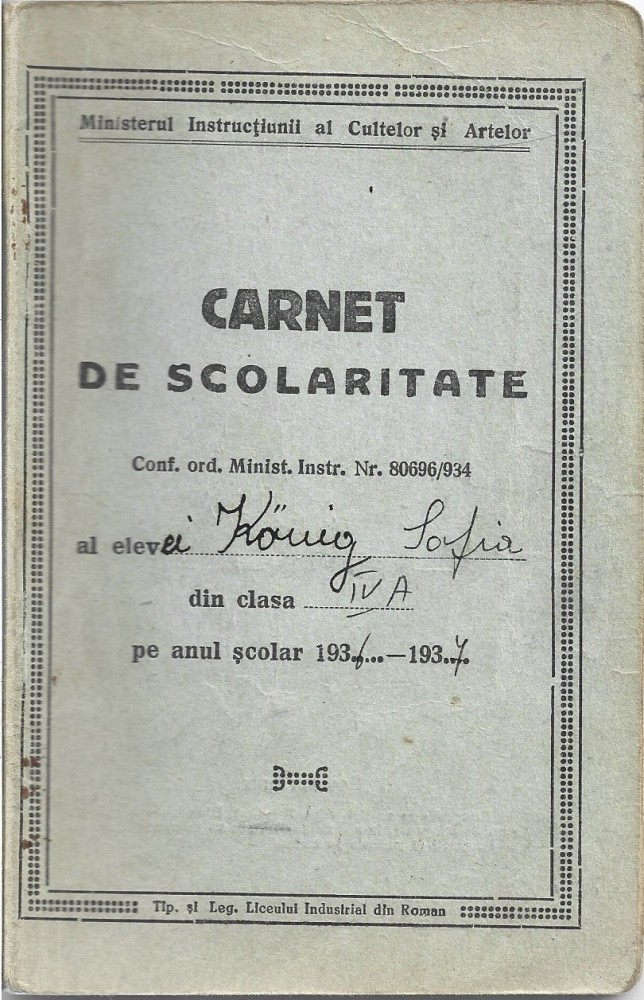A3665N Carnet de scolaritate, Liceul de fete Oltea Doamna, Cernăuți, 1936