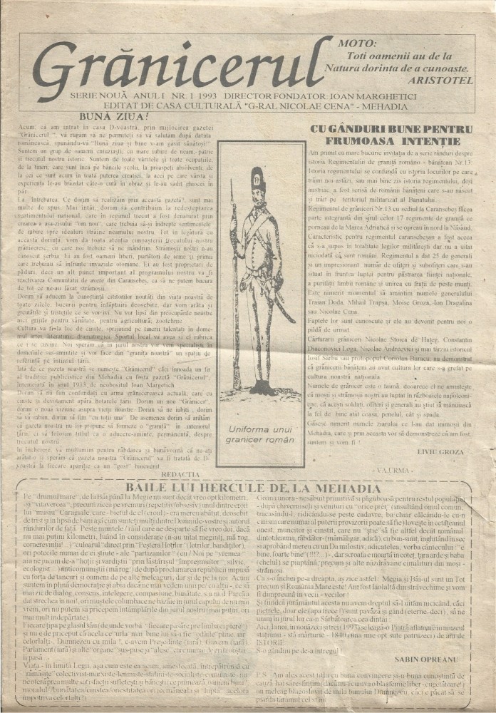 Grănicerul, numărul 1, anul I, 1993, Mehadia.