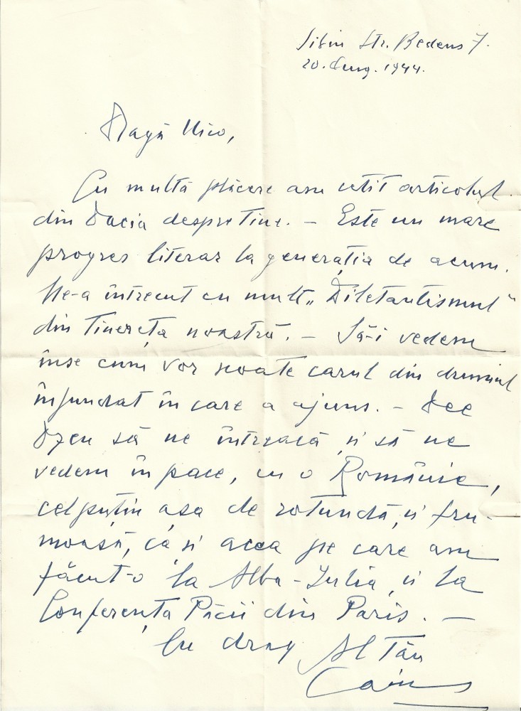 A3802N Caius Brediceanu, scrisoare olografă, 1944