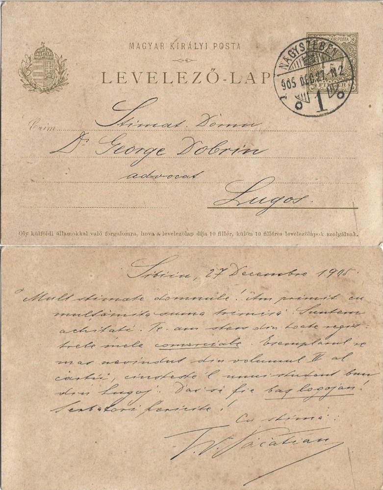 În cartea poștală de față Teodor Păcățian face vorbire tocmai