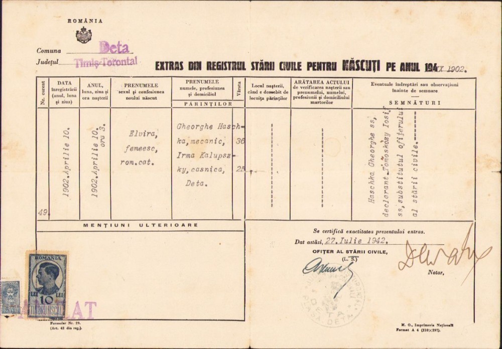 Extras registru stare civilă, 1942, Deta, județul Timiș