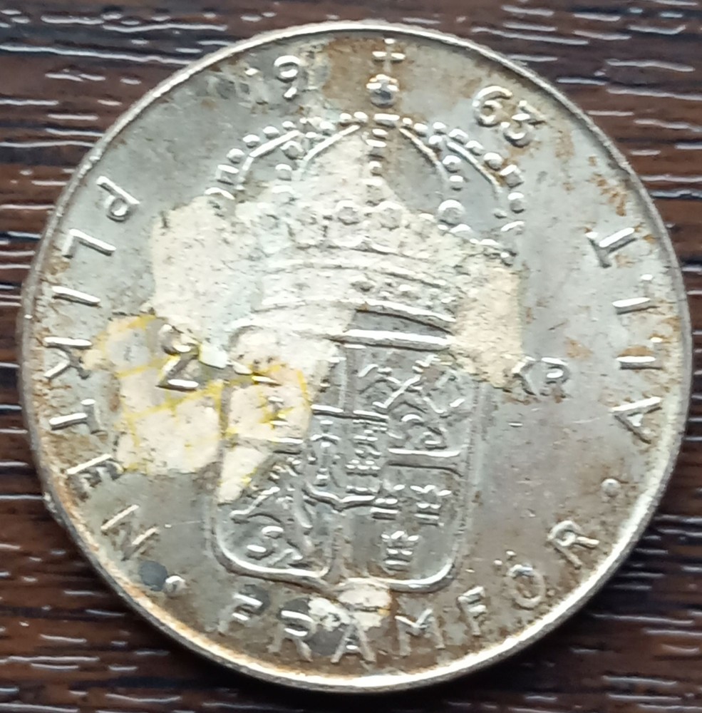 MONEDA DIN ARGINT SUEDIA - 2 KRONOR 1963, LIT. U, REGELE GUSTAV VI ADOLF