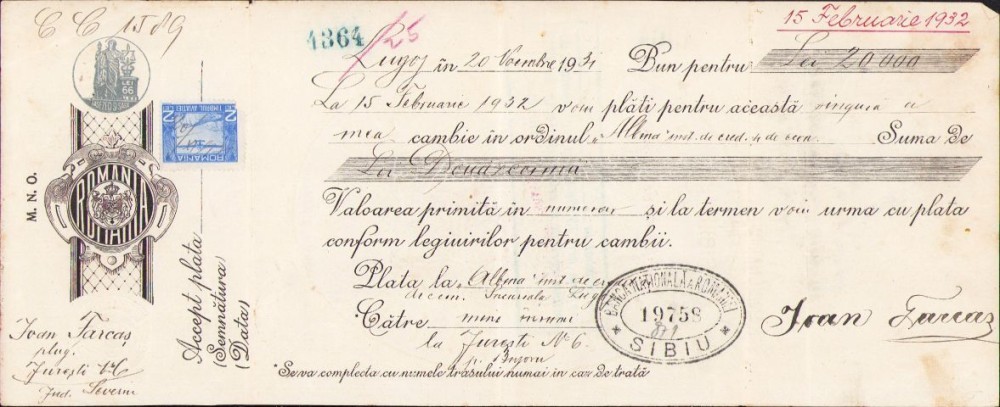 Cambie, 1934, Lugoj, ștampilă B.N.R.
