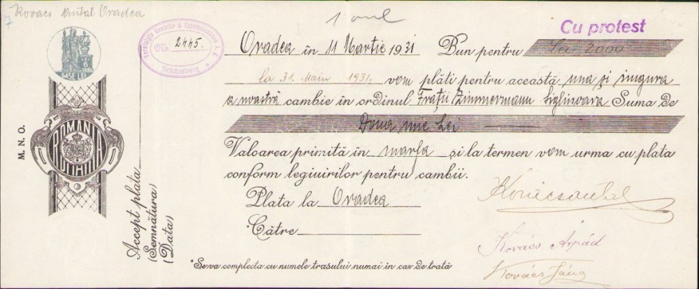 Cambie, 1931, Oradea – comercianți evrei Frații Zimmermann Sighișoara