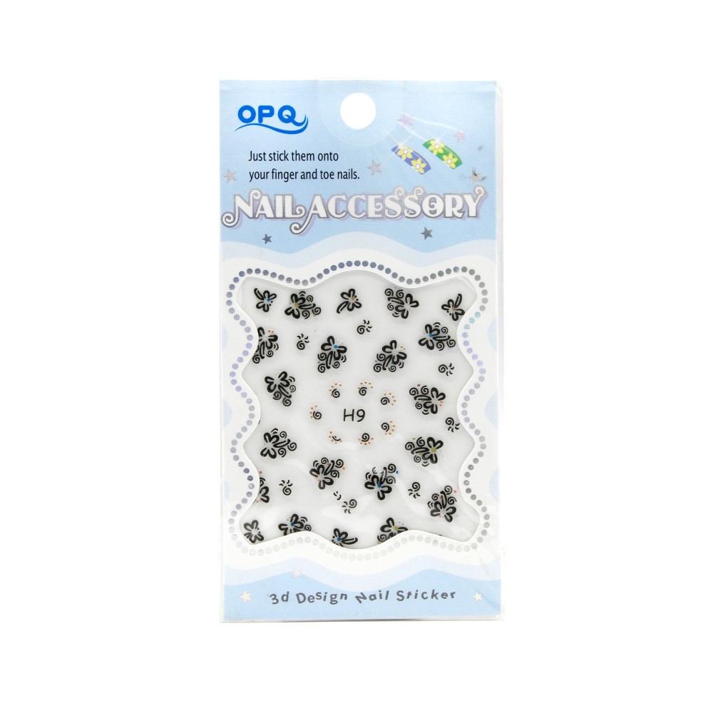 Abtibild pentru unghii 3D Nail Accessory OPQ H9 poate fi folosit atat de profesionisti, cat si de amatori. Abtibildurile 3D sunt realizate din materiale de inalta calitate. Acestea au o aderenta optima ce le ofera stabilitate pe unghii. Design-ul deosebit le face sa fie potrivite atat pentru manichiuri, cat si pedichiuri. Acestea se vor lipi foarte usor pe unghia data cu oja clasica, semipermanenta sau chiar pe constructiile din gel UV sau acryl.