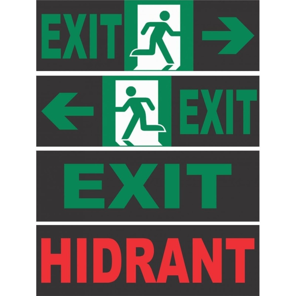 Autocolantul de calitate superioara poate fi folosit pentru a transforma aproape orice corp de iluminat intr-o lampa exit. De asemenea, autocolantul cu inscriptia Hidrant poate fi folosit pentru a indica sursele de hidrant.
