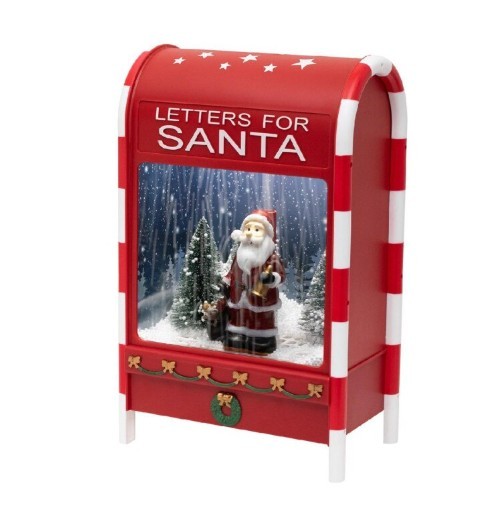 Acasă LFS400 cutie poștală muzicală, cu ninsoare, 4 LED-uri SMD alb rece, plastic, 8 melodii de Crăciun, alimentare cu baterii, design interior