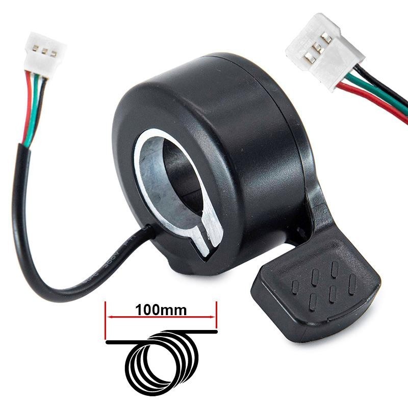 Această accelerație universală este compatibilă cu o gamă largă de trotinete electrice, inclusiv modele precum Smartgyro Baggio, fiind ideală pentru înlocuirea manetei de accelerație deteriorate. Dispune de polarizare inversată, aspect important pentru compatibilitatea cu anumite modele de controlere. Caracteristici: Compatibilitate: universală (inclusiv Smartgyro Baggio și alte modele cu polaritate inversă) Culoare: Negru Tip montaj: pe ghidon, fixare cu șurub Tip semnal: analogic, cu senzor Hall Tensiune de funcționare: 24V / 36V / 48V (în funcție de trotineta compatibilă) Conector: 3 pini, cu polaritate inversă față de standard Cablu inclus: lungime suficientă pentru montaj standard Avantaje: Ușor de montat și înlocuit Funcționare lină și precisă a accelerației Potrivită pentru trotinete electrice cu sistem de control pe bază de senzor Hall Design compact și ergonomic pentru confort în utilizare Important!! Polaritate inversată: firul roșu este negativ și firul negru este pozitiv. Verificați cablajul, asigurați-vă că culorile de pe Conector trotineta electricai se potrivesc înainte de conectare. Pentru smartgyro Baggio, este necesar să conectați Conector trotineta electricaul invers: fir roșu cu negru și fir negru cu roșu, rezultând polaritatea inversă.