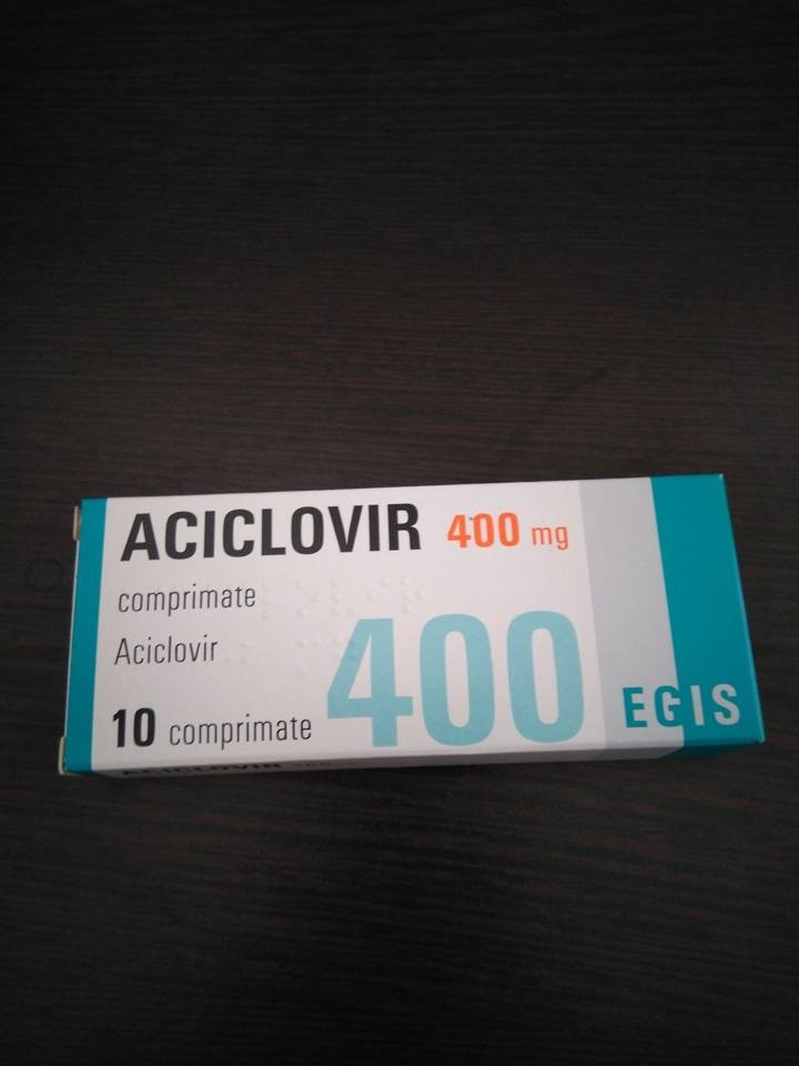 Vand o cutie comprimate Aciclovir 400 mg. Cutia contine 10 comprimate, si expira in 09.2020.