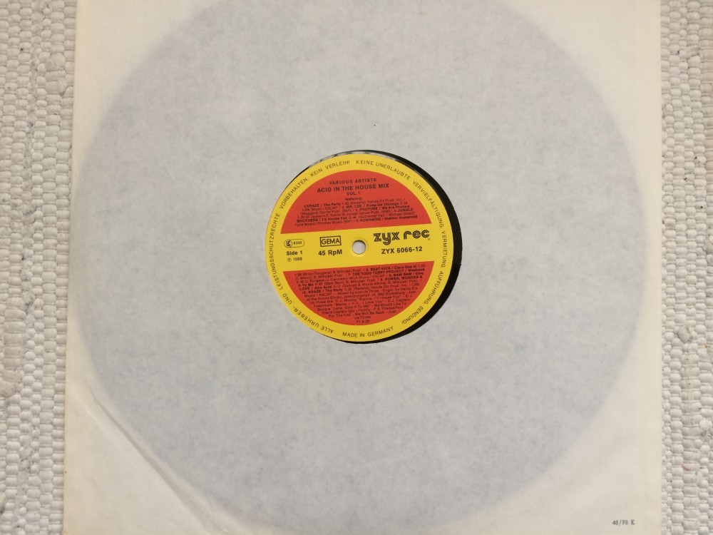 acid in the house mix vol. 1 1988 disc vinyl 12" 45 RPM muzica acid house electro ZYX Records germany generic VG+