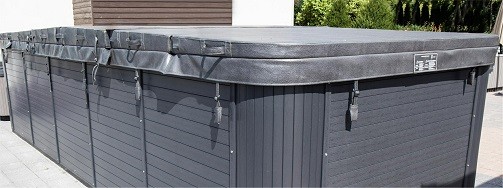 Acoperișul termic are o grosime de 120 mm la mijloc și este înclinat spre marginile jacuzzi-ului (70 mm), astfel încât precipitațiile care cade pe el se pot scurge ușor. Prelata de iarnă Xtreme™ pentru piscină este în medie cu 5 cm mai groasă decât o prelată termică tradițională, oferind o izolație mai eficientă. Îl recomandăm celor care doresc să profite de efectele benefice ale băii în aer liber chiar și iarna. Acoperișul termic Swimspa de dimensiunea S este disponibil pentru următoarele piscine: Danube, Danube Power
