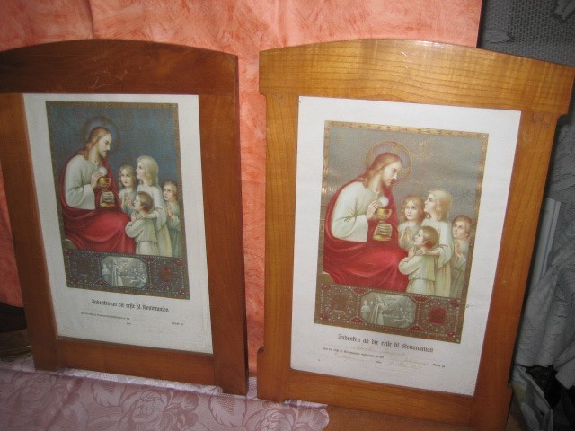 Act de comuniune al unei bisericii catolice cu ocazia jubileumului an 1924 cu rame de cires, inaltime 50 cm, latime 35 cm, in stare buna. Exista 2 bucati, pretul este per bucata.