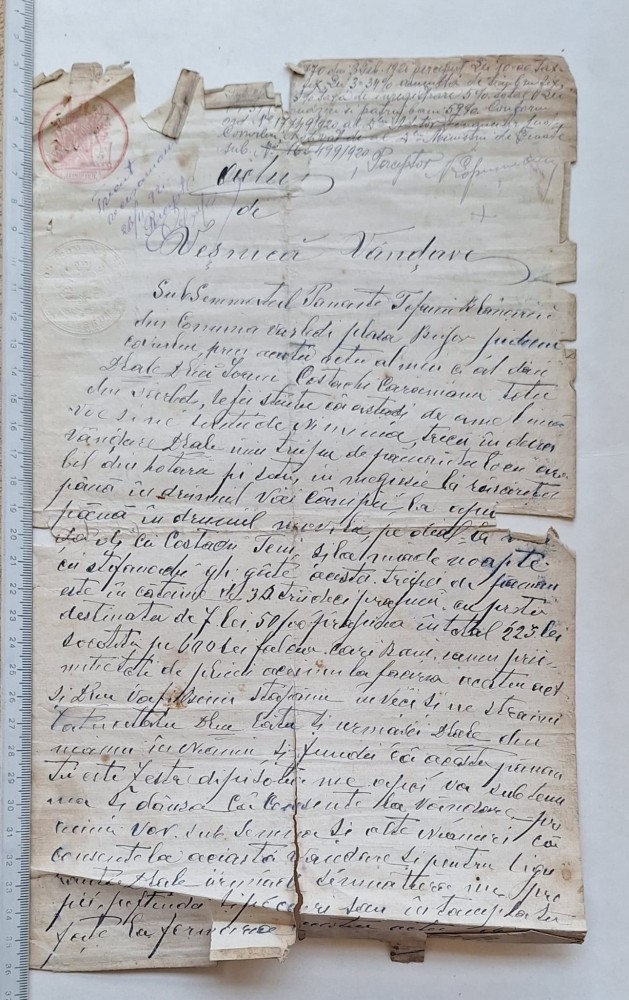 Act de veșnică vânzare teren – Vălcilei, județul Covurlui – cca. 1905 – timbru fiscal 50 bani