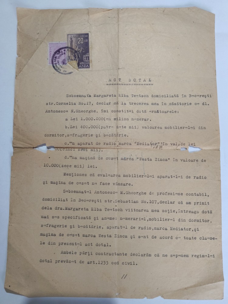 Act Dotal datat 13 august 1945, Bucuresti / CD1P
