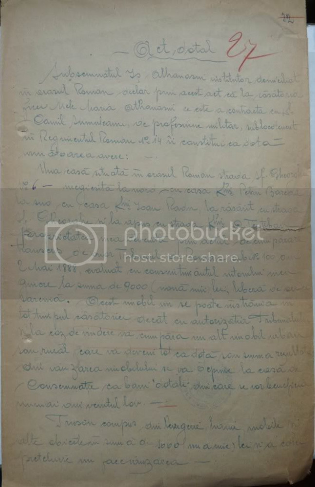 Act dotal, Sublocotenent Regimentul 14 Roman, 1929