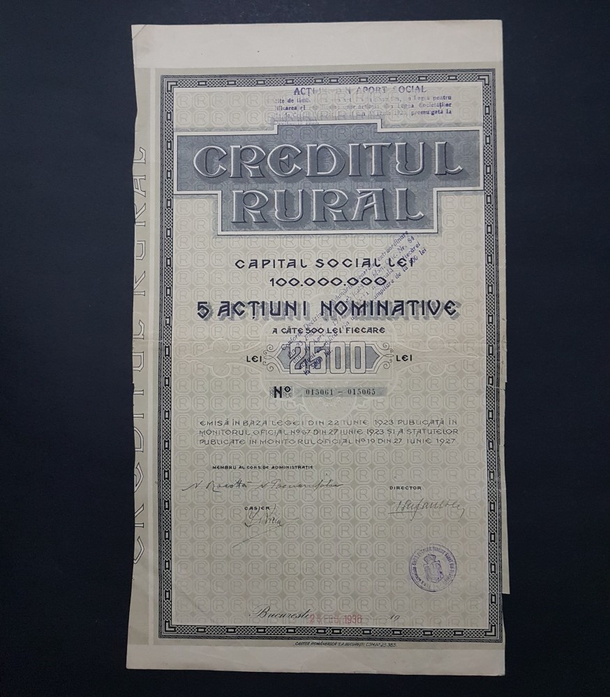 Actiune 1936 Creditul rural , titlu 5 actiuni nominative