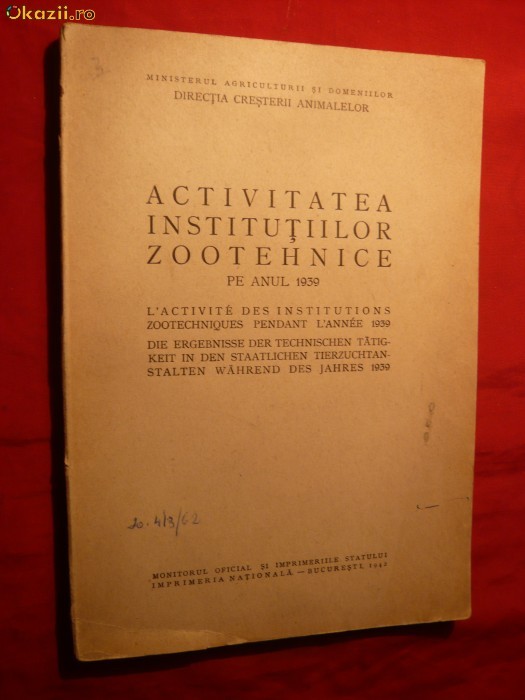 Activitatea Inst. Zootehnice -1939 -Monitorul Oficial 1942