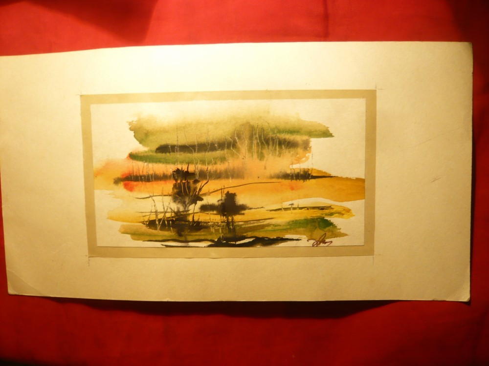 Acuarela - Peisaj - APUS -semnatura indescifrabila ,18,2 x 13 cm partea pictata