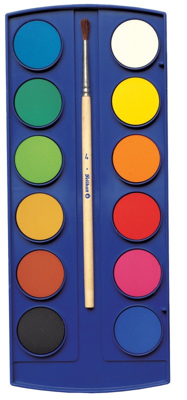 Acuarele tip pastila, 12 pastile de culoare, inclusiv alb, pensula inclusa, Pelikan