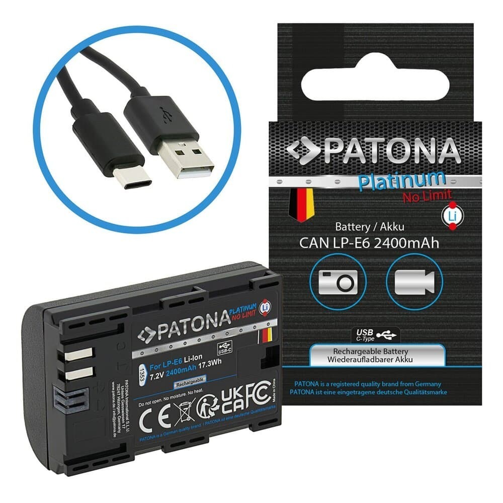 Acumulator Patona Platinum LP-E6 cu USB-C 2400mAh compatibil Canon EOS 5D 6D 7D 80D -1353