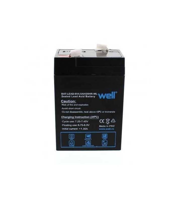 Acumulator plumb acid 6V 4.5AH, marca Well. Tensiune iesire 6V Capacitate 4.5 Ah. Terminal T1 4.8 mm.