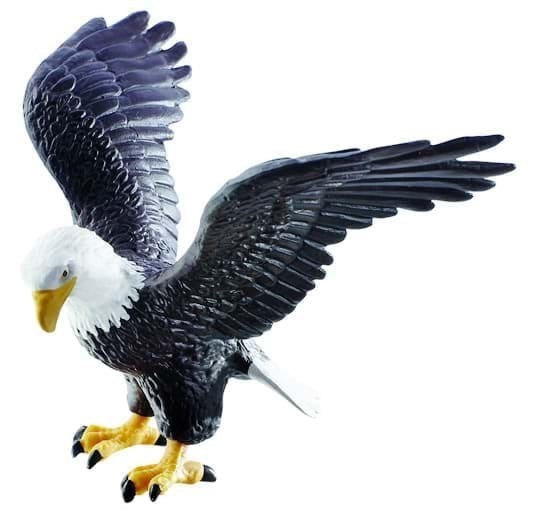 Acvila este un gen de pasare rapitoare de zi, mare, puternica, cu ciocul drept la baza si incovoiat la varf, cu pene care acopera picioarele pana la degete, cu gheare puternice si cu aripi lungi si ascutite pentru a desprinde carnea de pe prada. In plus, acvila are o acuitate vizuala foarte buna care ii permite sa vada potentiale prazi la distanta. Figurina este pictata manual si este realizata dintr-un material fara PVC. Dimensiune: 15 cm. Contraindicat copiilor mai mici de 3 ani. A se folosi sub directa supraveghere a unei persoane adulte.