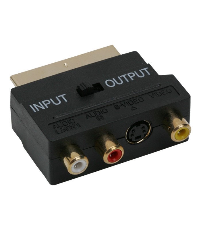 Soclu 3 RCA si S-VIDEO la Fisa EURO-SCART. Placat cu aur. Cu intrerupator.