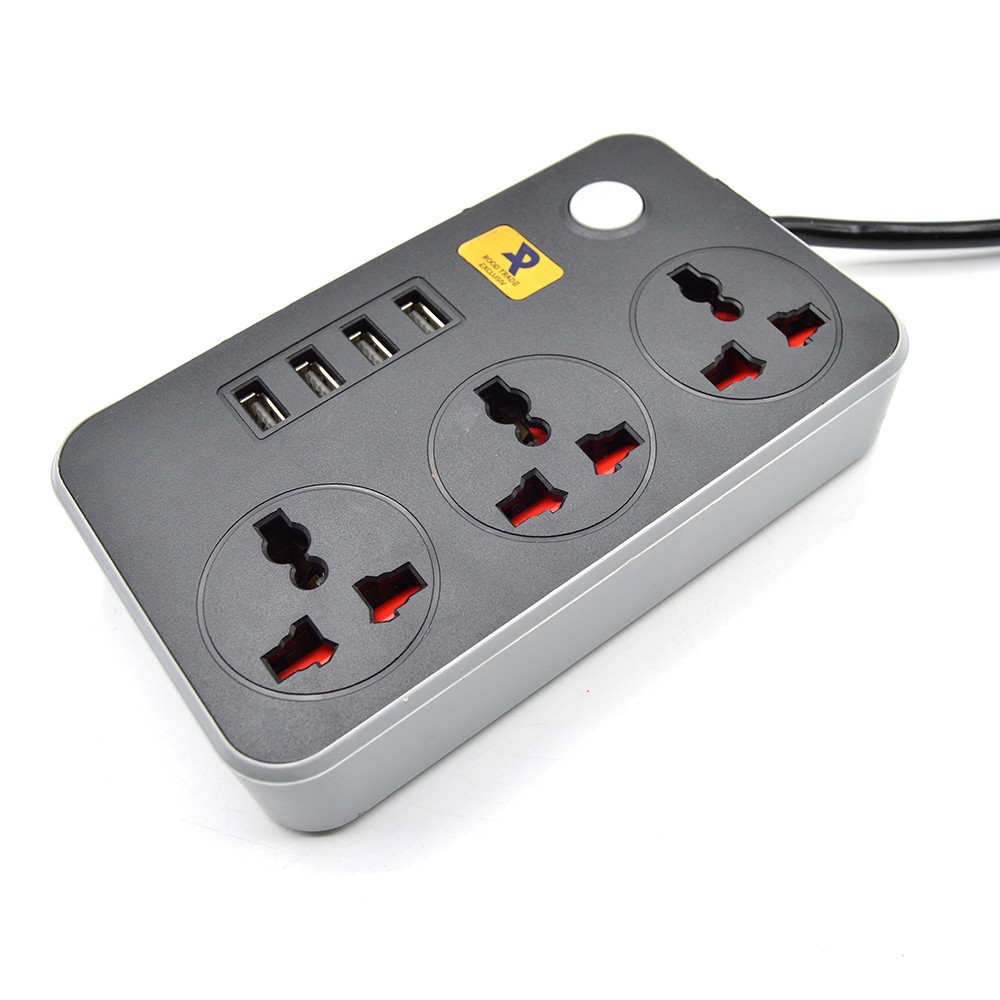 Adaptor cu 3 prize si 4 USB, E187, cablu 2.6m