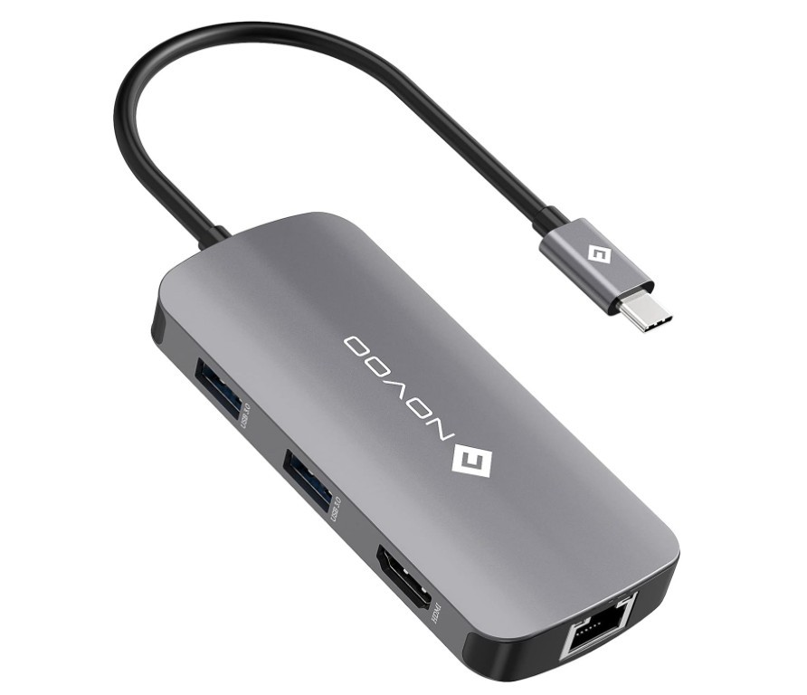 Hub USB C 7-în-1 NOVOO - HDMI 4K, Ethernet RJ45, 4 porturi USB, tip