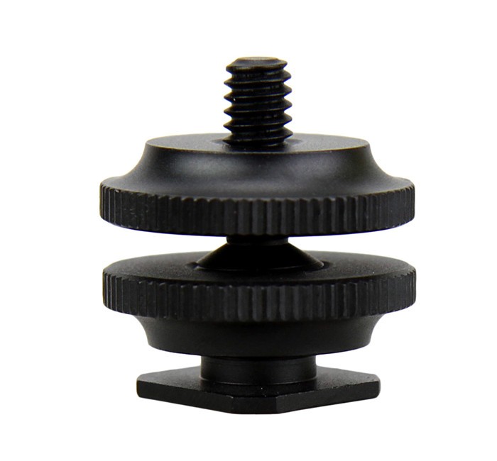 Adaptorul permite montarea acesoriilor cu filet mama 1/4 pe orice dispozitiv dotat cu patina de blitz conventionala.