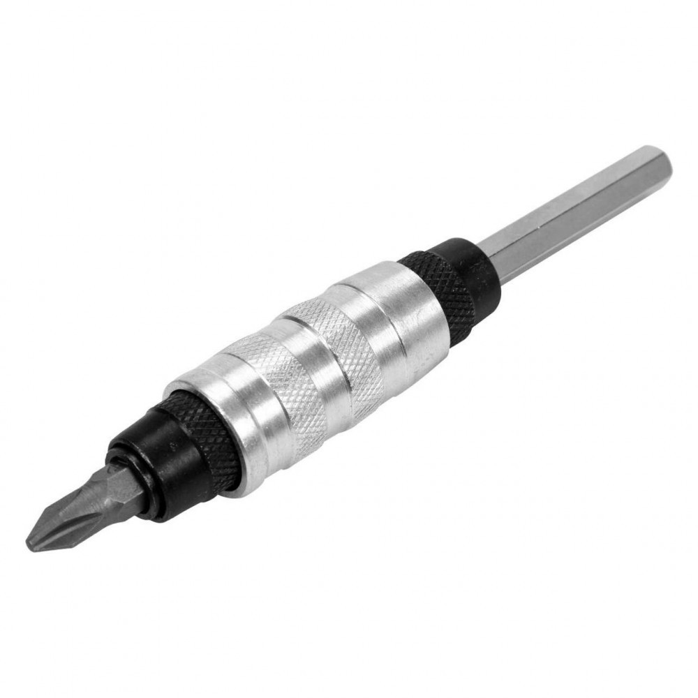 Adaptor unghiular pentru biți de 1/4 "de YATO YT-04635. Proiectat pentru biți de 1/4" și burți cu vârf de 6,35 mm. Are un angrenaj cu rulment cu bile și capacitatea de a schimba rotația în ambele direcții. • din oțel crom-vanadiu și aluminiu • lungime: 100 mm • mișcare în intervalul de 30 ° • suport magnetic HEX 1/4 "cu două fețe.