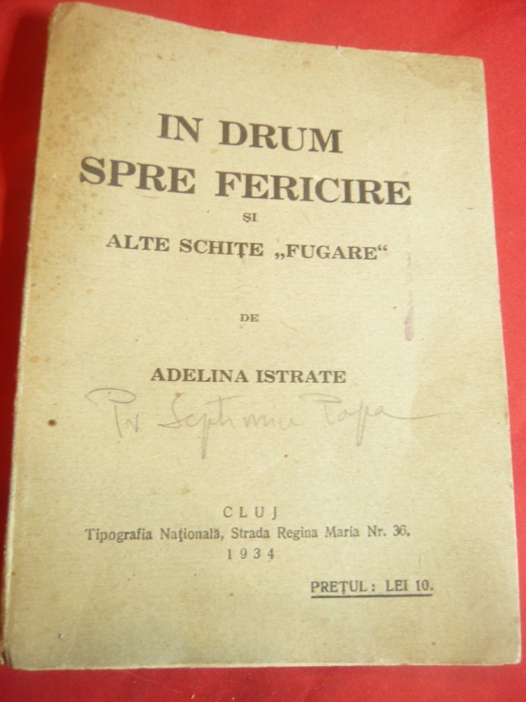 Adelina Istrate - In drum spre fericire -si alte schite fugare -1934 Tipogr.Nationala Cluj ,96 pag