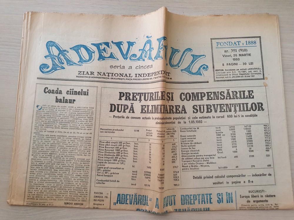 adevarul 26 martie 1993-preturile si compensarile dupa eliminarea subventiilor