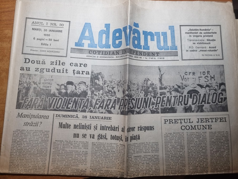 adevarul 30 ianuarie 1990-mari demonstratii in tara