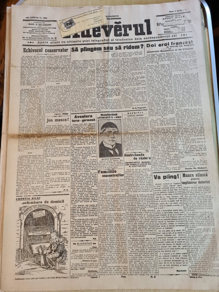 adevarul 6 martie 1915-articole primul razboi mondial,marghiloman,carp,