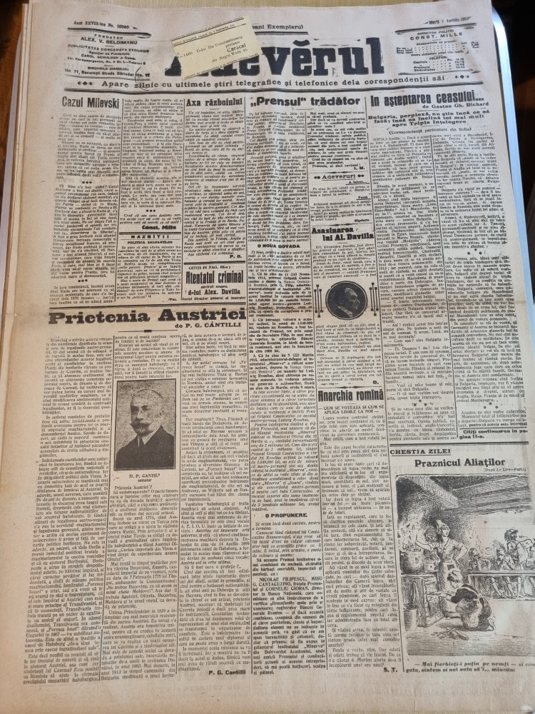 adevarul 7 aprilie 1915-razboil mondial,atentat contra lui alexandru davilla