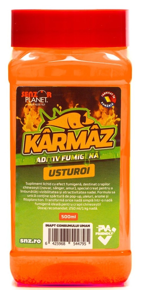 <h4>Aditiv SENZOR Karmaz, Novac Usturoi, 500ml</h4><p><br>Supliment lichid cu efect fumigena, destinat crapilor chinezești (novac, sanger, amur), special creat pentru a imbunatati vizibilitatea si atractivitatea nadei. Formula sa unica conține spartura de pop-up, uleiuri, arome și fitoplancton. Transforma orice nada simpla intr-o nada fumigena ideala pentru crapii chinezesti.</p><p><br></p><ul><li>Tip: aditiv</li><li>Producator: Senzor</li><li>Model: Kamaz</li><li>Nu topeste materialele PVA</li><li>Efect de nor</li><li>Atractie ridicata</li><li>Aroma: Novac Usturoi</li><li>Culoare: portocaliu</li><li>Mod de ambalare: 500ml</li></ul><p></p><p></p>