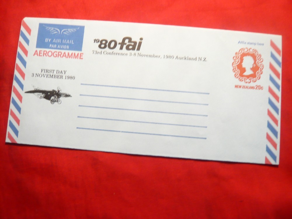 Aerograma -Expozitia 1980 FAI -A 73a Conferinta Noua Zeelanda , marca fixa 20C